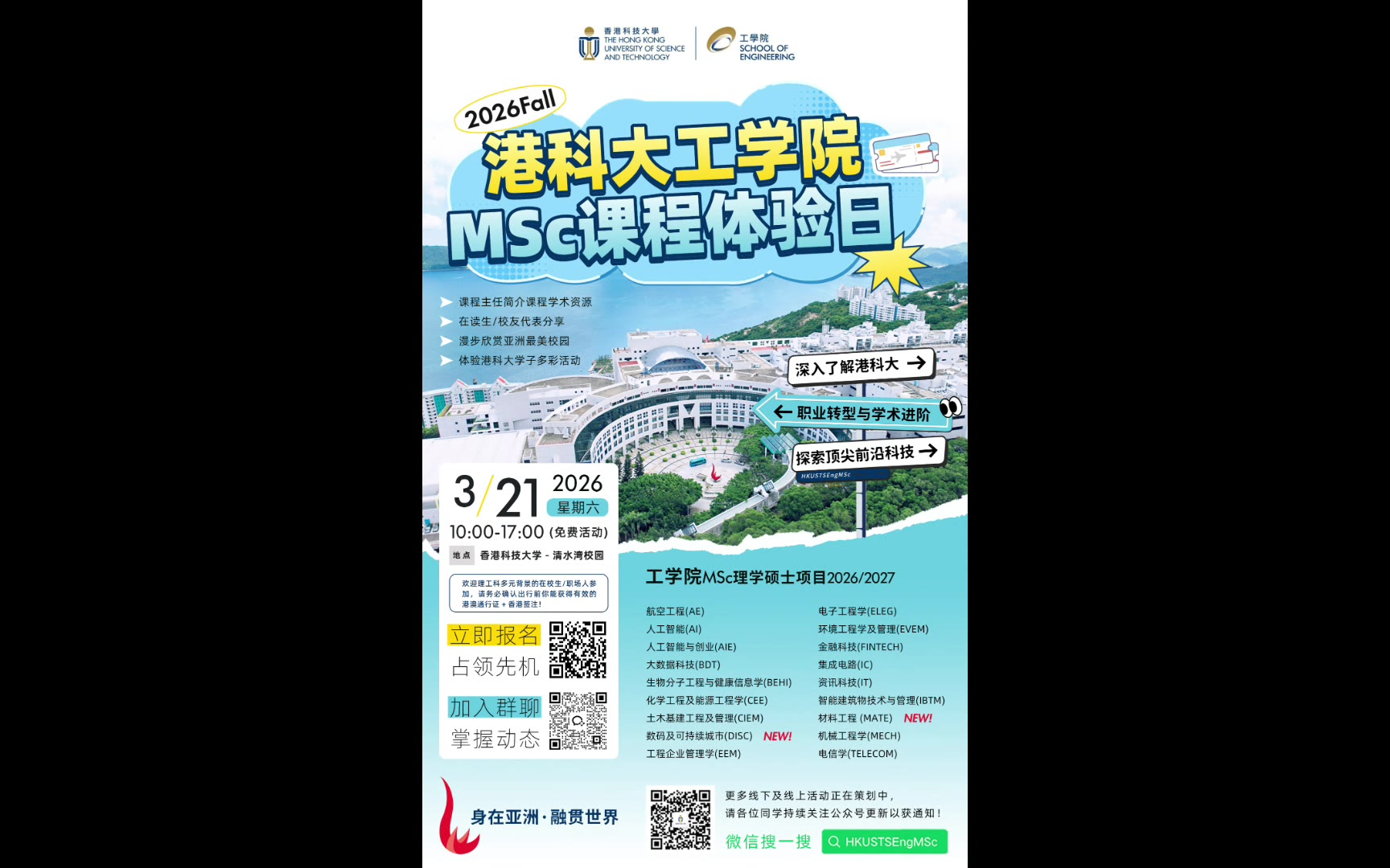 校园体验日----香港科技大学工学院理学硕士MSc课程专场
