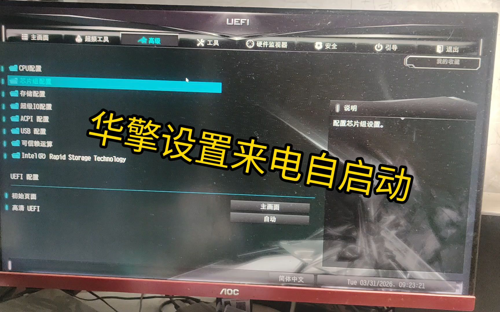 华擎主板如何设置来电自启动