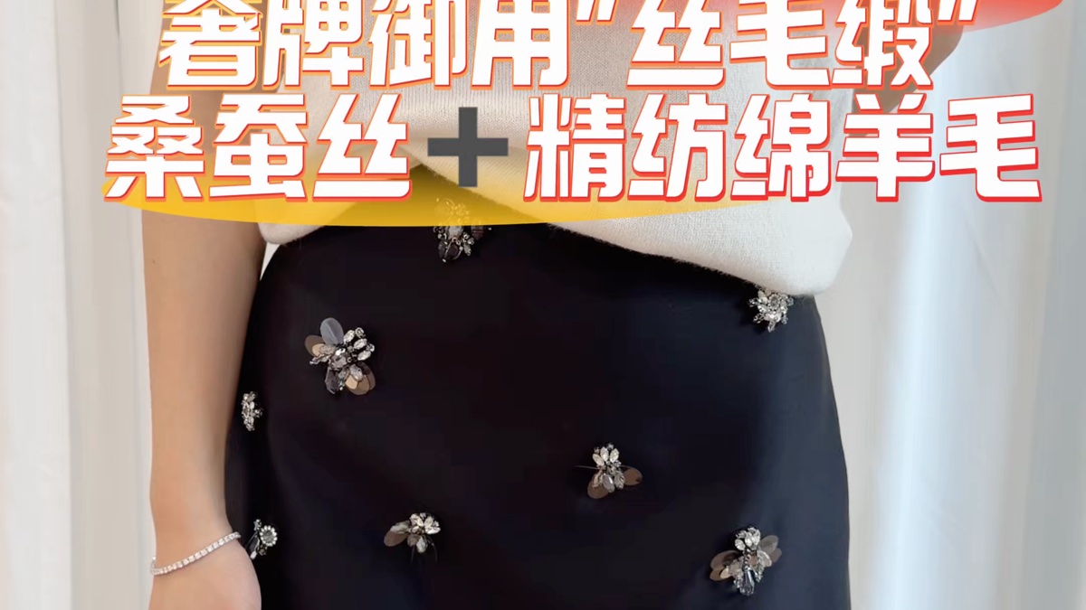 奢牌御用 丝毛缎 ,桑蚕丝精纺绵羊毛#丝羊毛 #真丝半身裙#桑蚕丝半身裙#dior裙子