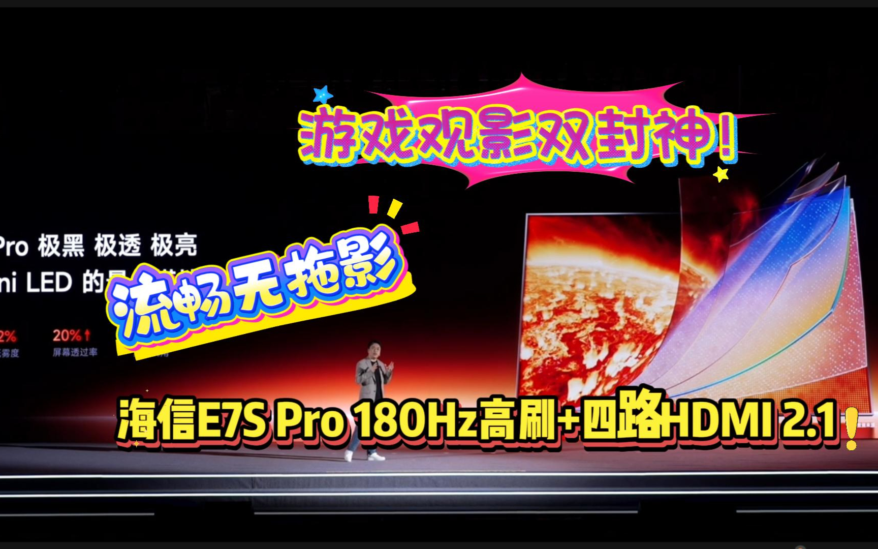 游戏观影双封神!海信E7S Pro 180Hz高刷+四路HDMI 2.1,流畅无拖影