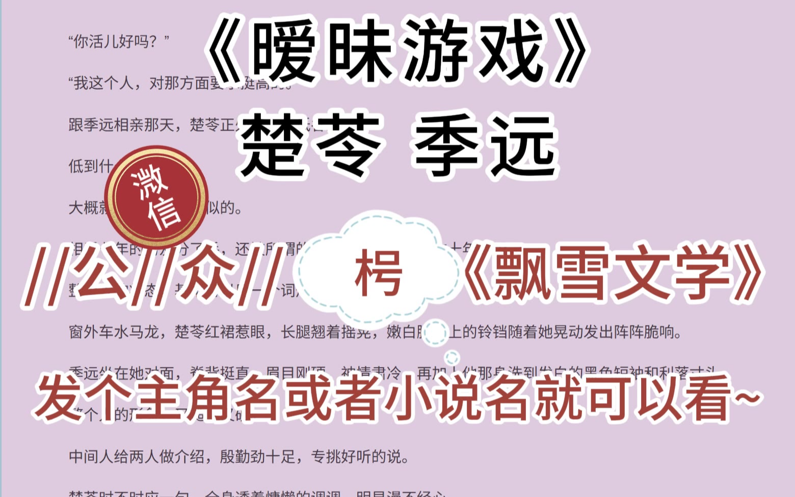 《楚苓季远》小说:暧昧游戏——季远楚苓,跟季远相亲那天,楚苓长腿翘着,嫩白脚踝上的铃铛发出阵阵脆响