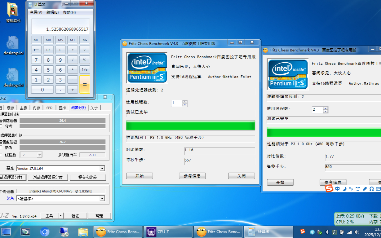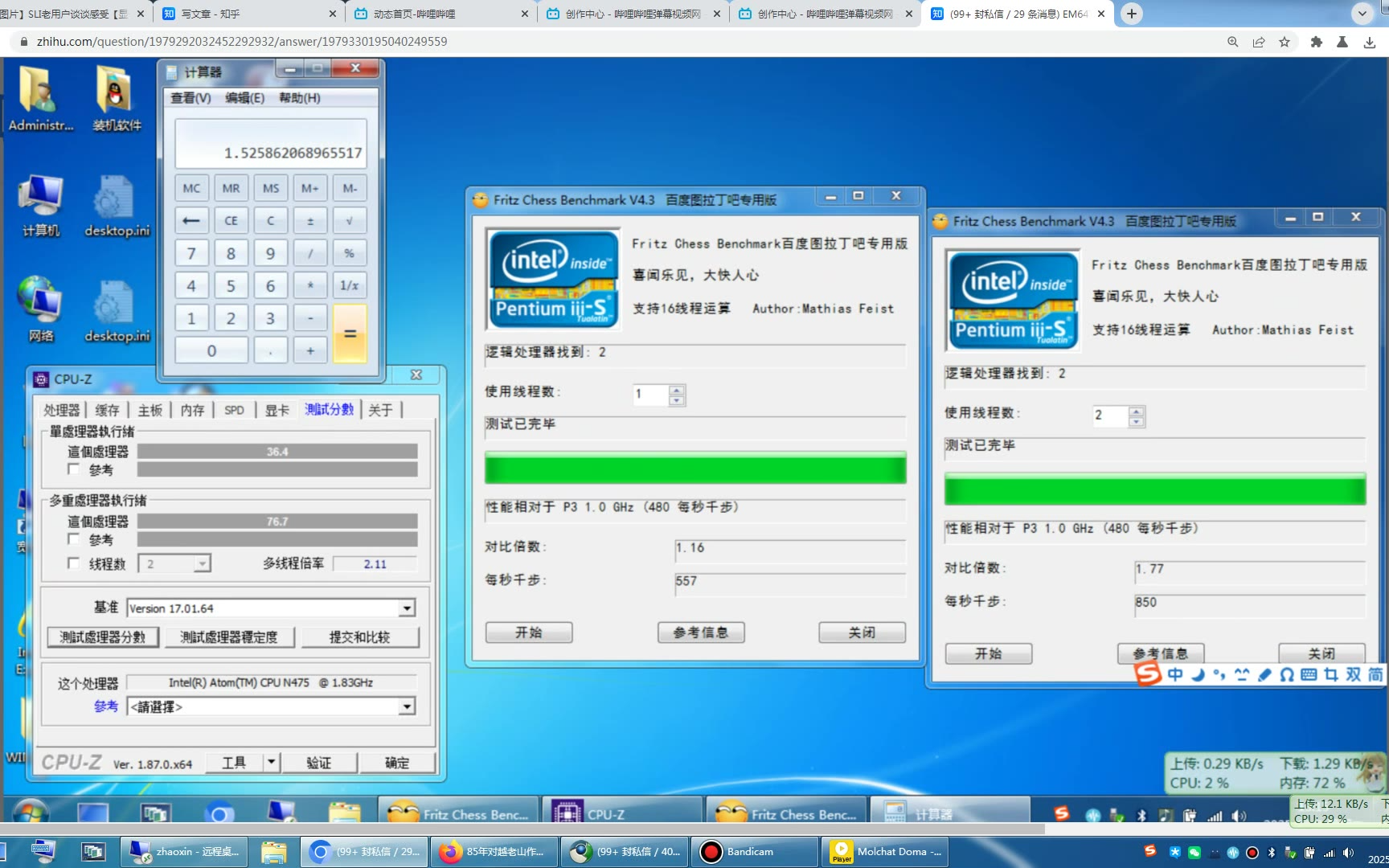 ATOM N475超线程效率测试(CPUz 象棋跑分)