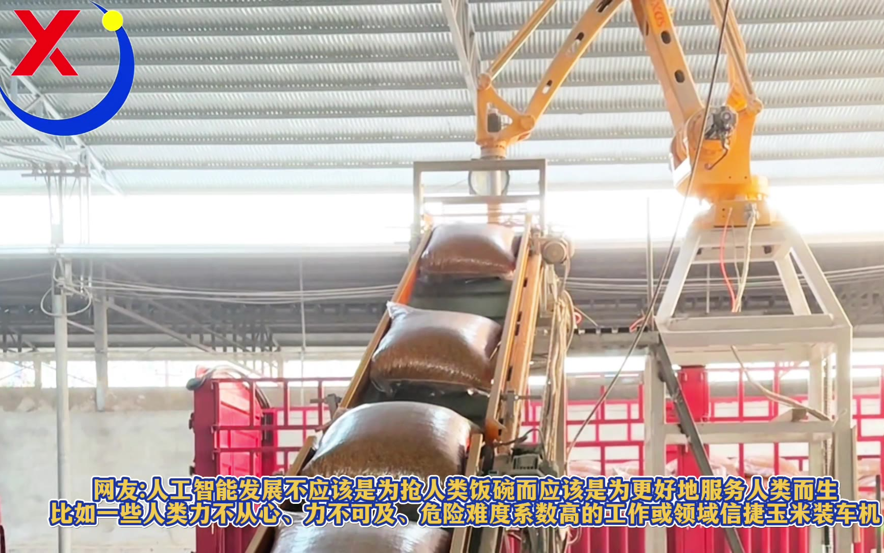 以前装玉米加班赶工工人辛苦效率跟不上还缺岗6人一年光薪资就快60w现在换机器人顶上24小时