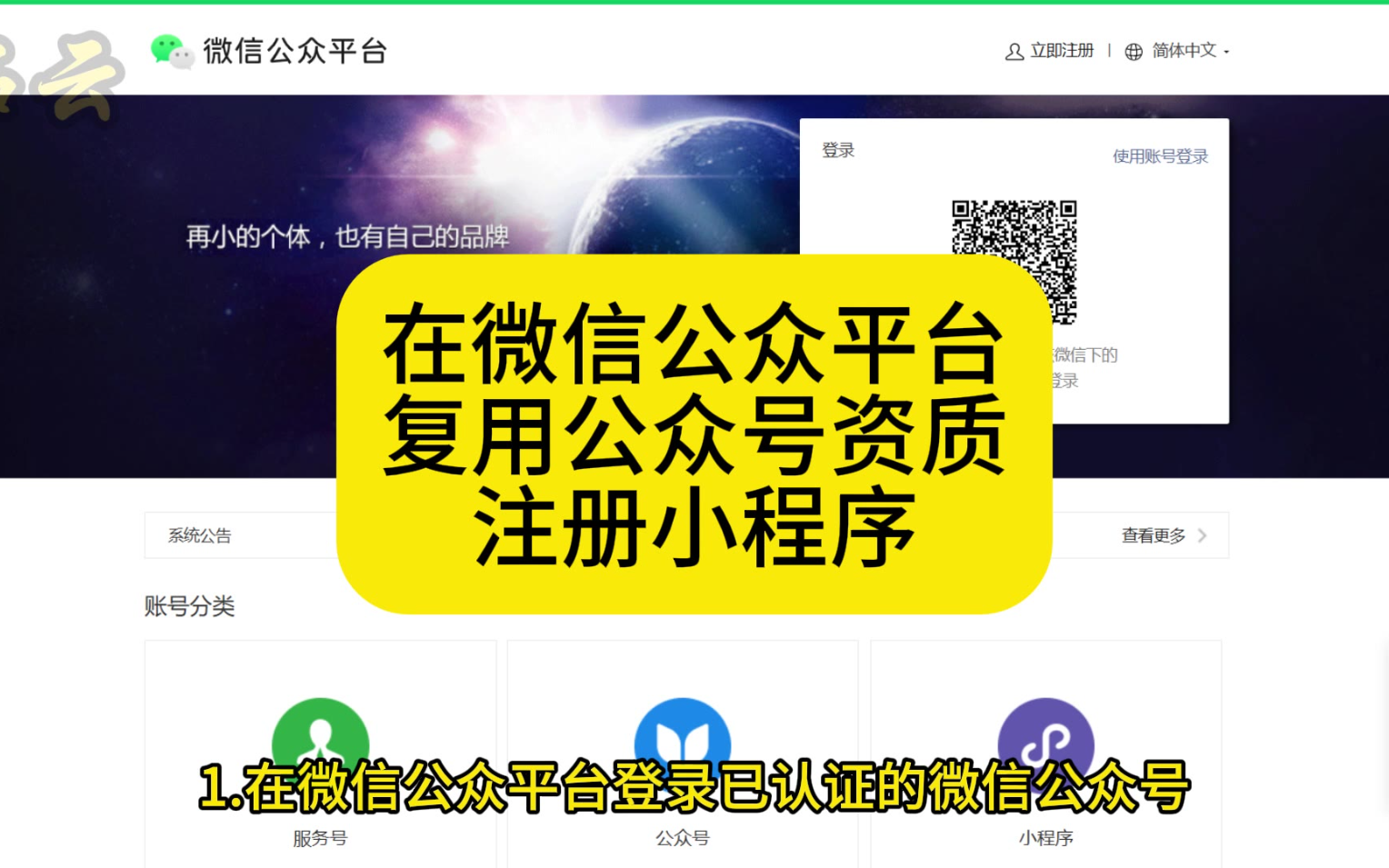 在微信公众平台复用公众号资质,注册小程序教程-慢速