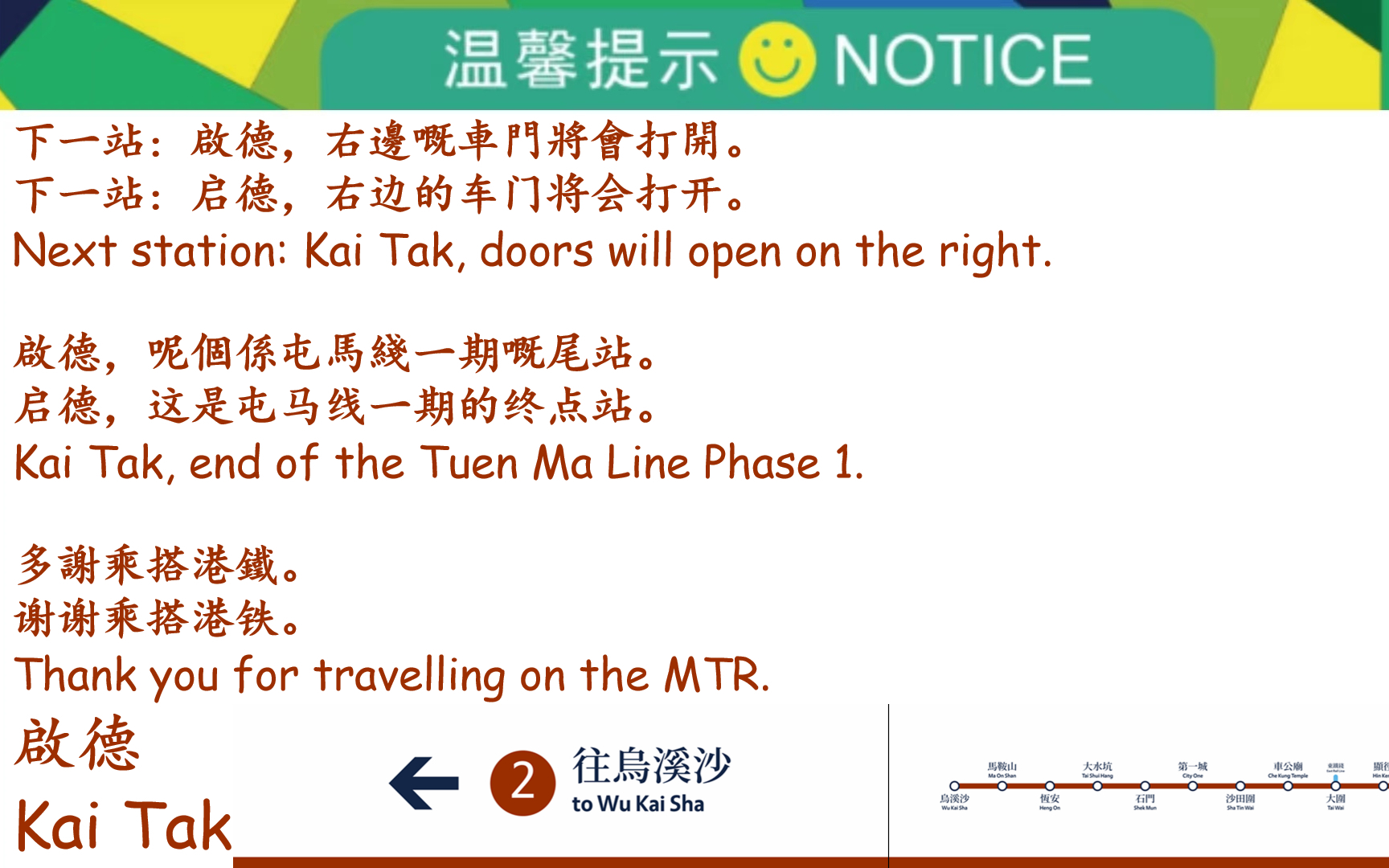 〖港鐵屯馬綫一期开通6周年〗港鐵屯馬綫一期(啟德方向)啟德报站(机器风格)