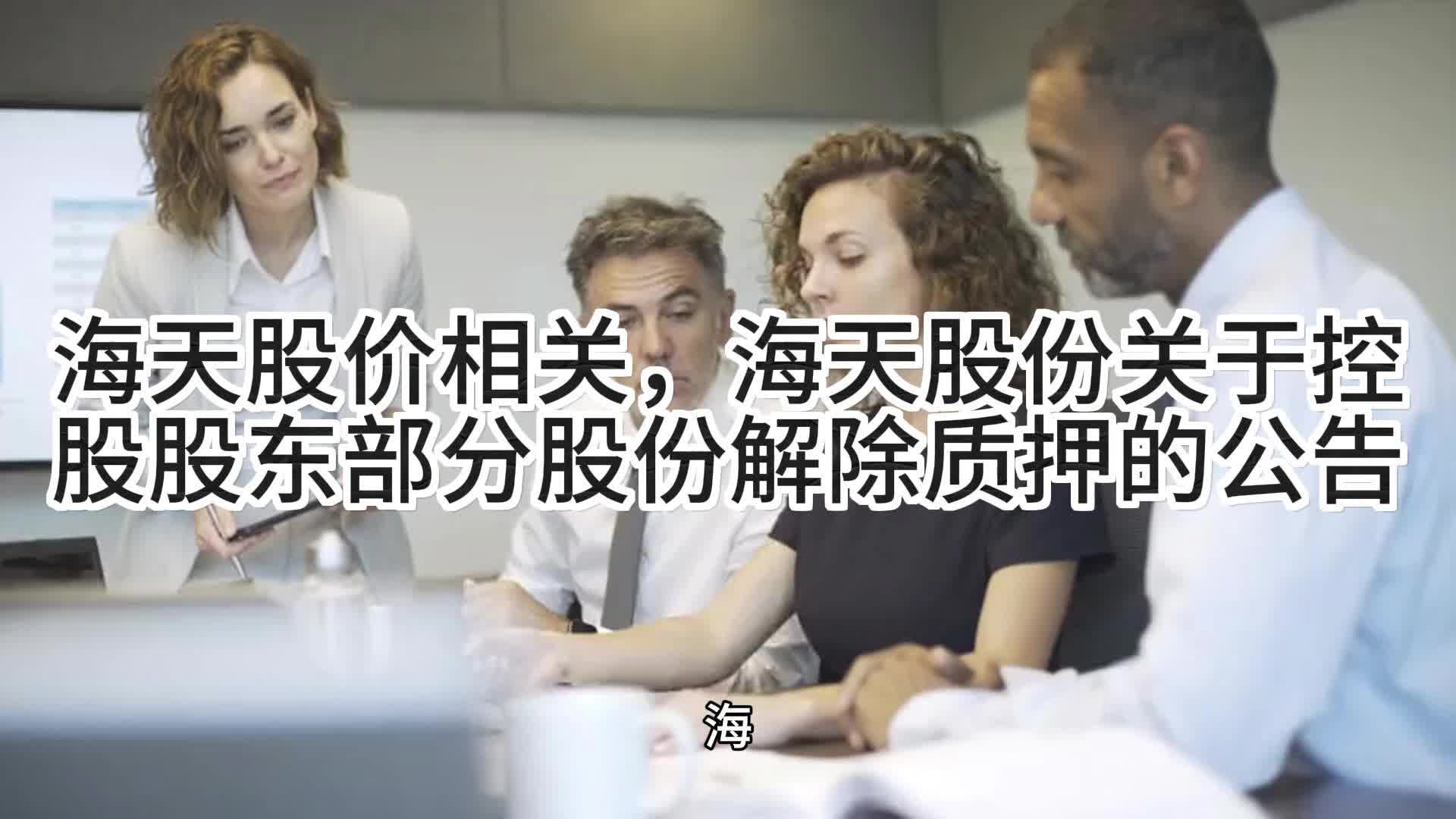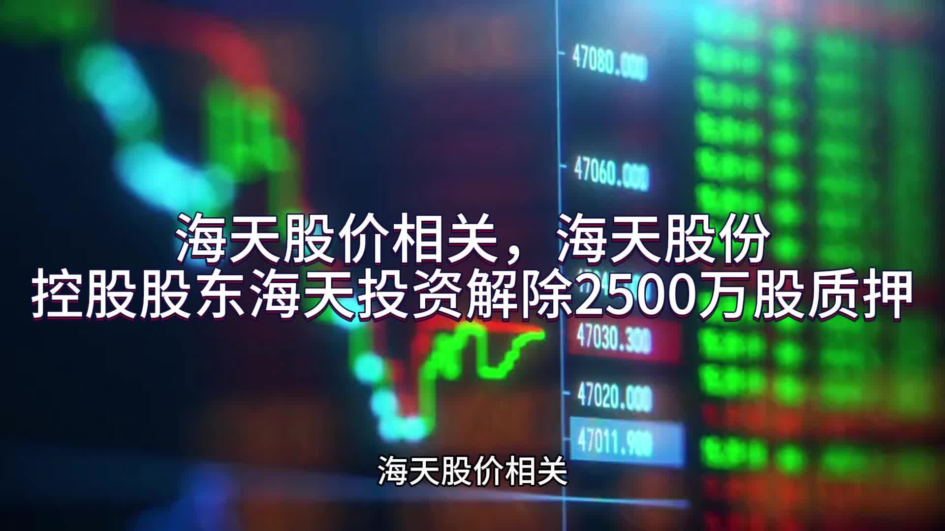 海天股价相关,海天股份:控股股东海天投资解除2500万股质押