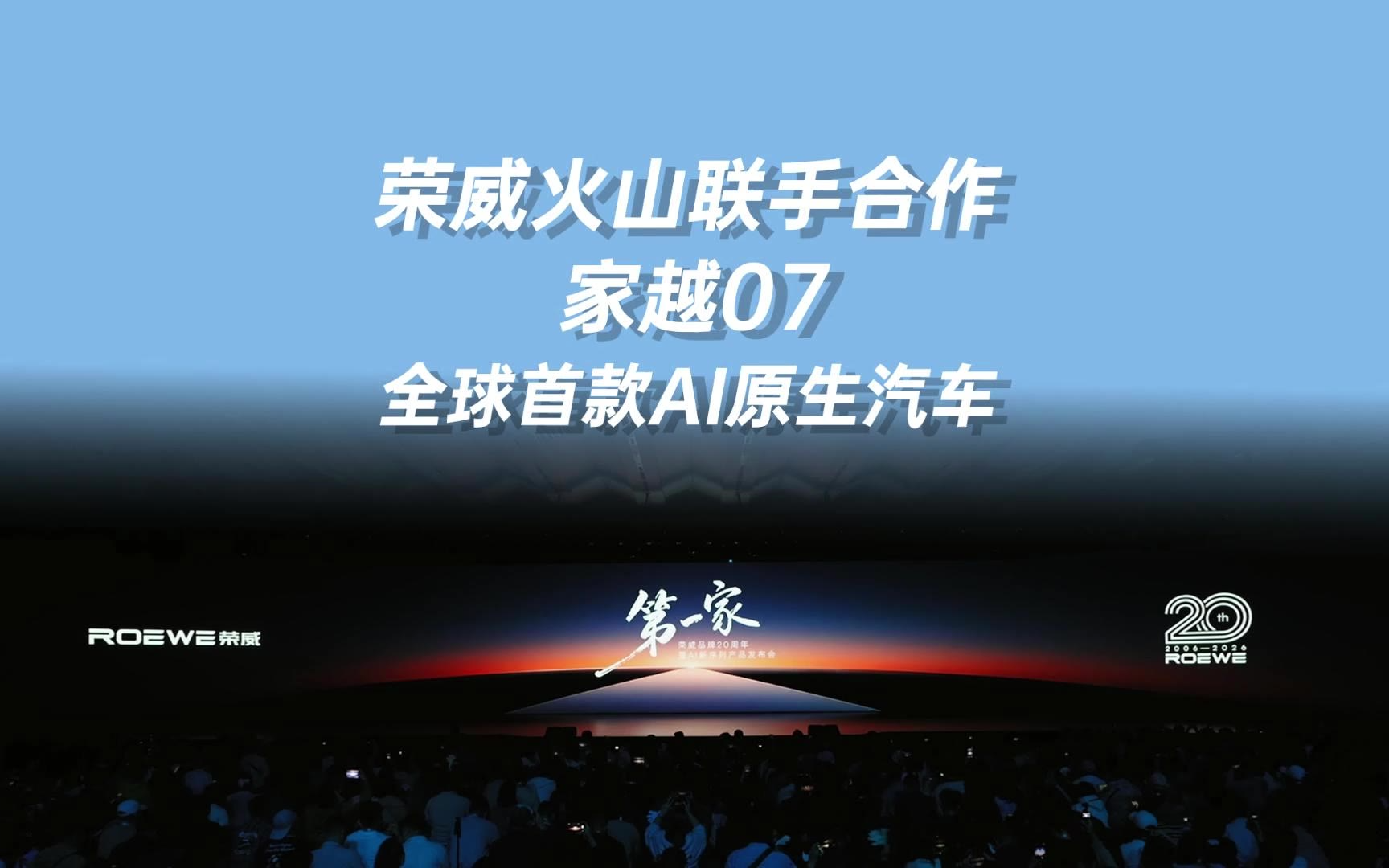荣威火山联手合作,荣威家越07,全球首款AI原生汽车。