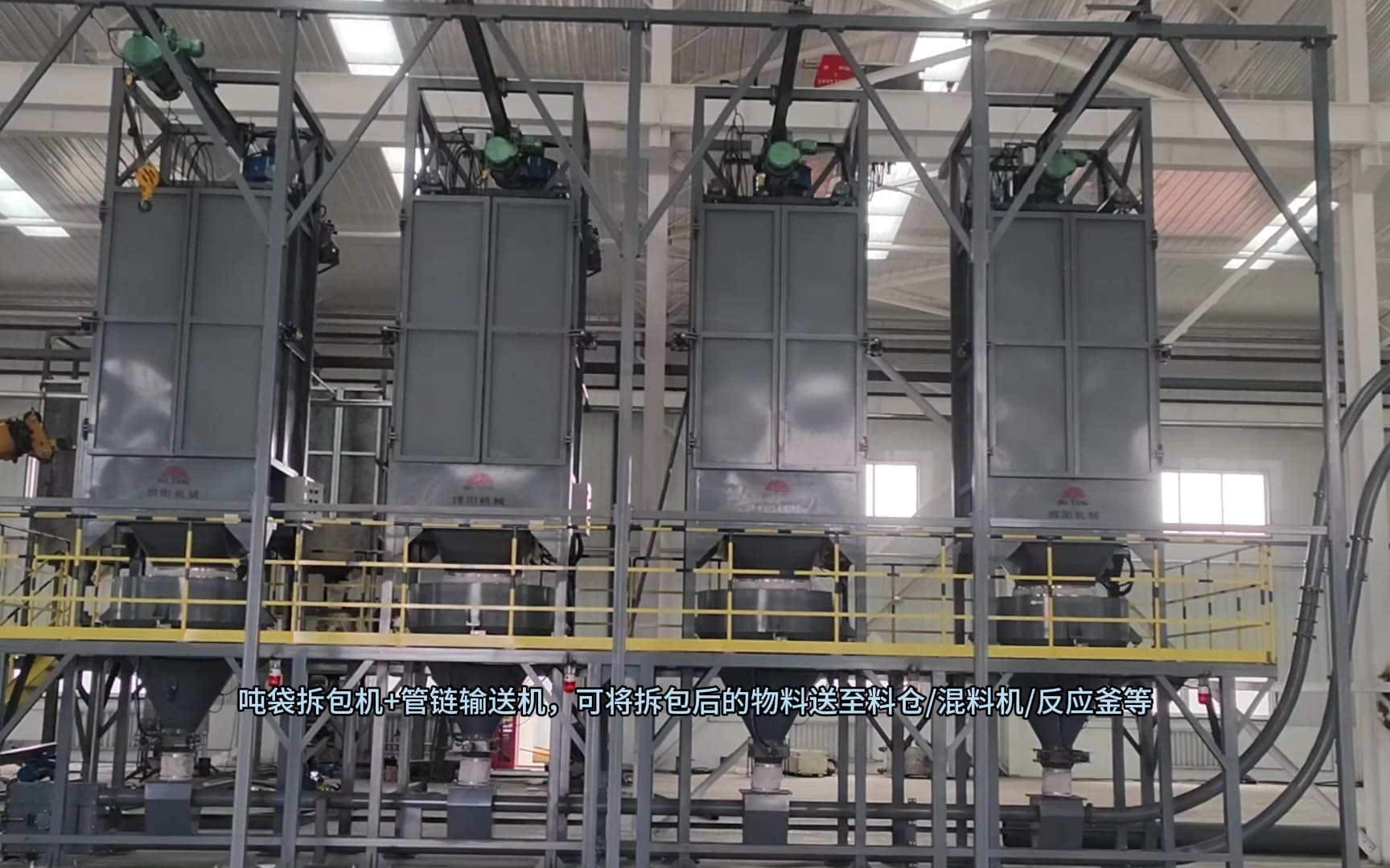 PVC粉吨袋自动拆包机 配套多点出料管链机 实现对多台反应釜定量供料