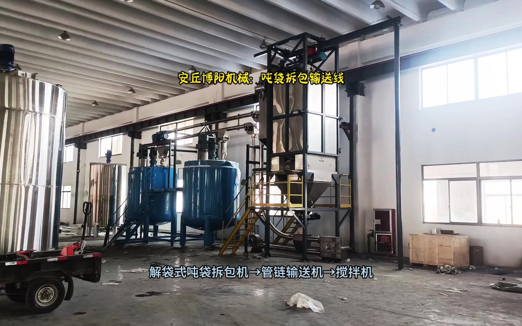 天津橡胶助剂吨包自动拆包机+多点进料管链输送机客户案例