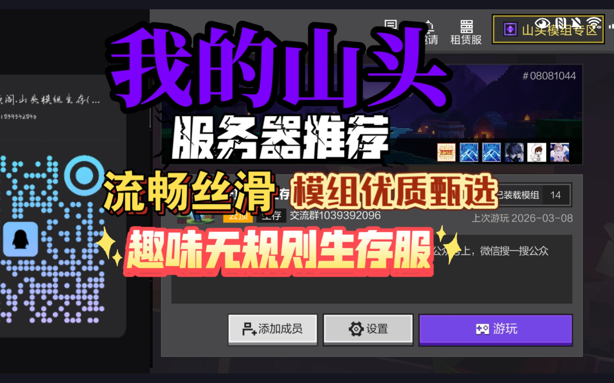 网易我的世界山头,流畅不卡顿,模组优质,欢迎大家的游玩!
