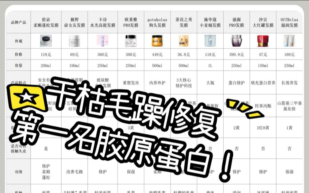 修护发膜哪款好?干枯毛躁修复第一名胶原蛋白!最新避坑指南