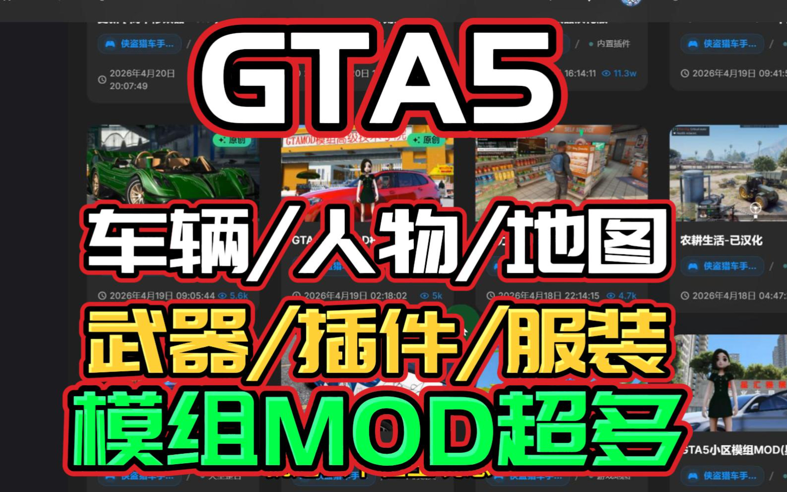 国内能下载到GTA5车辆人物服装地图武器插件画质等模组MOD的地方你知道吗