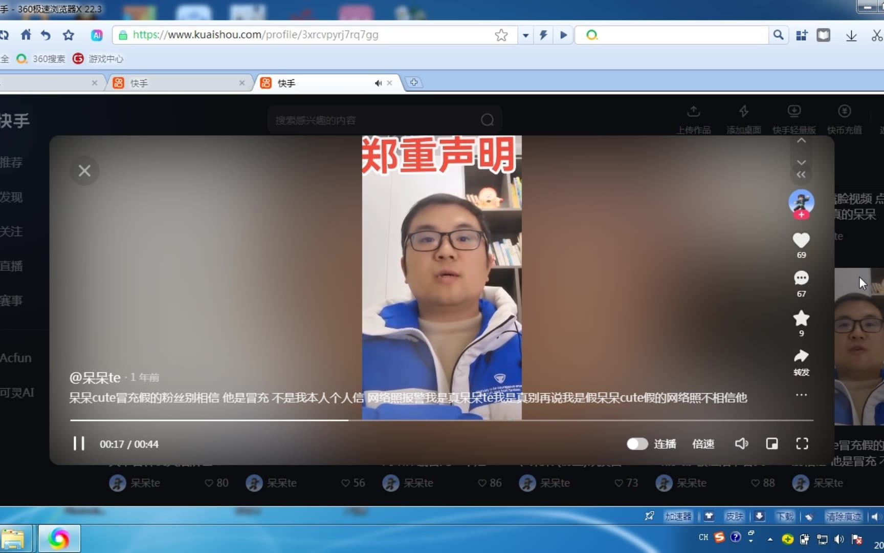 我和呆呆te的矛盾,呆呆cute是正主、呆呆te是假的,他的直播间的说话声音是陈年小学生